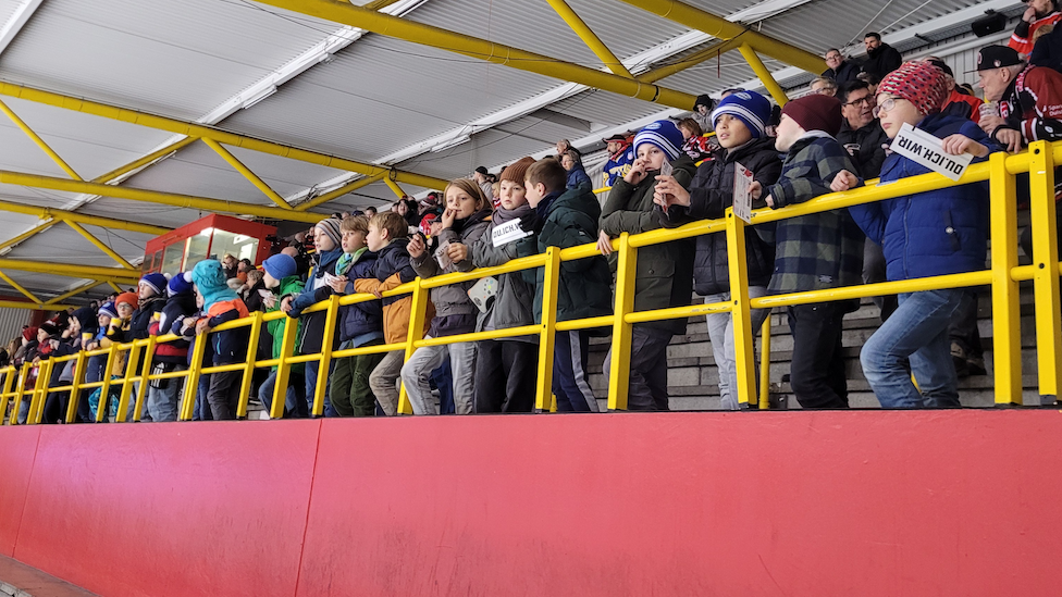Zum diesjährigen Abschluss der Feldsaison 2024 unternahmen unsere mU10-Jungs einen Ausflug zu den Hockeykollegen auf anderem Untergrund: ein Eishockeyspiel der Füchse Duisburg gegen die Black Dragons Erfurt. Am Feiertag Allerheiligen trafen wir uns, unweit der MSV Duisburg Arena, zum Abendspiel vor der Eishalle und gingen dann geschlossen auf die Stehplatz-Tribüne der Heimfans. Mit bestem Blick auf das Spielfeld machten sich die Jungs in vorderster Reihe der Tribüne breit. Für die meisten, einschließlich vieler Erwachsener, war dies der erste Besuch eines Eishockeyspiels. Die gespannte Vorfreude war dementsprechend groß. Und diese wurde durch das Spiel nicht enttäuscht. Auch wenn nicht alle Jungs die Regeln beherrschten, waren sie total glücklich und fieberten, bestens versorgt mit Pommes und Waffeln, mit, um den am Ende verdienten 4:1-Erfolg der Füchse ausgelassen zu feiern.