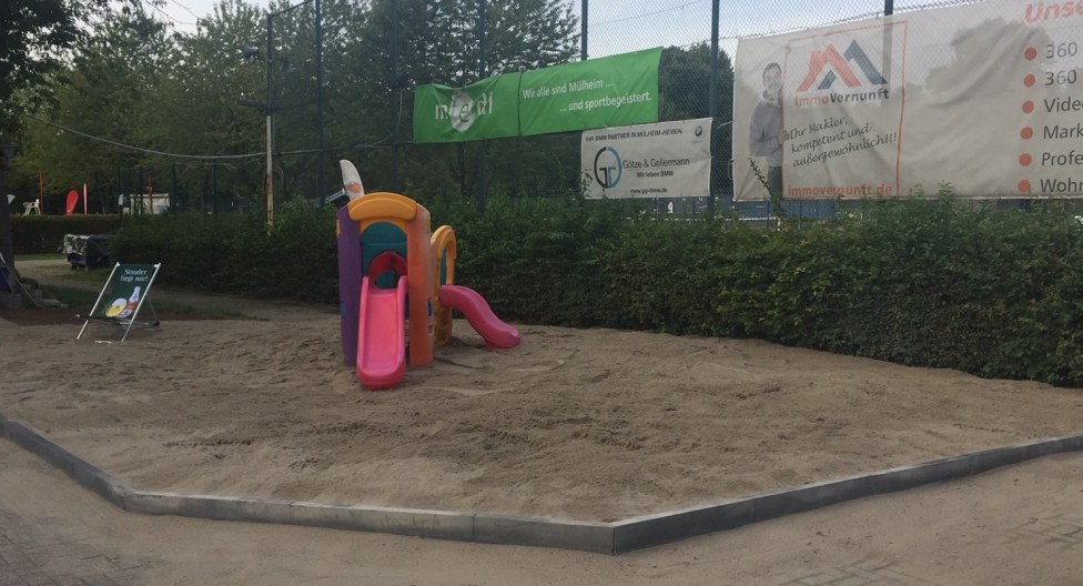 Mit vereinten Kräften aus Hockeyeltern und Wassersportlern wurde in den Sommerferien eine größere Spielplatzfläche fertiggestellt. Dazu wurde die ausgesuchte Fläche ausgehoben, eingefasst und mit Sand gefüllt.