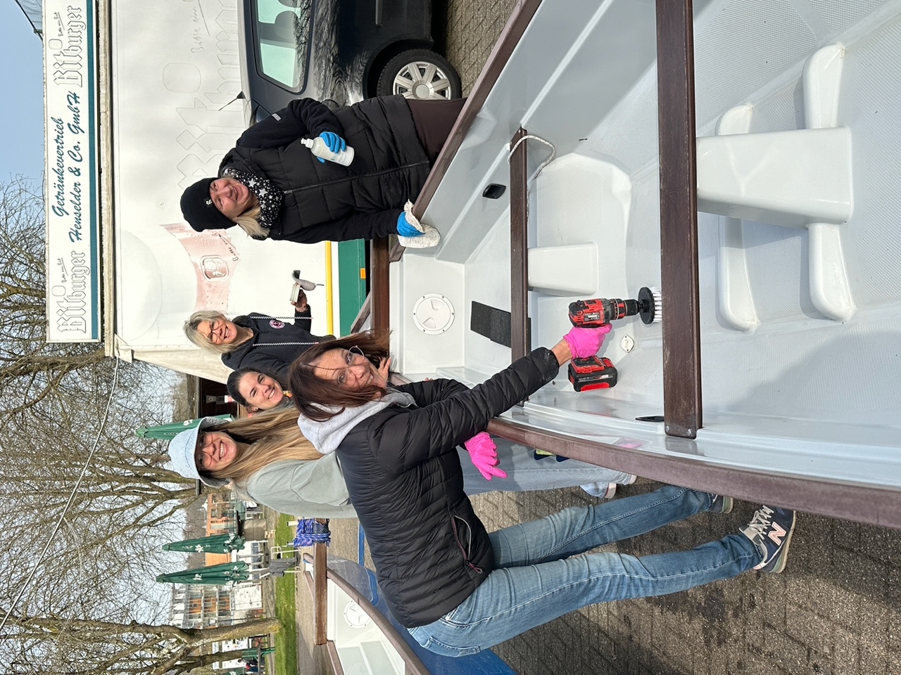 Ein besonderer Einsatz kam von fünf weiblichen Mitgliedern der Wassersportabteilung. Sie kümmerten sich intensiv um die Drachenboote, die gründlich gereinigt wurden. Sitze und Reling wurden mit einer speziellen Pflegepaste aufbereitet, sodass die Boote wieder in neuem Glanz erstrahlen.